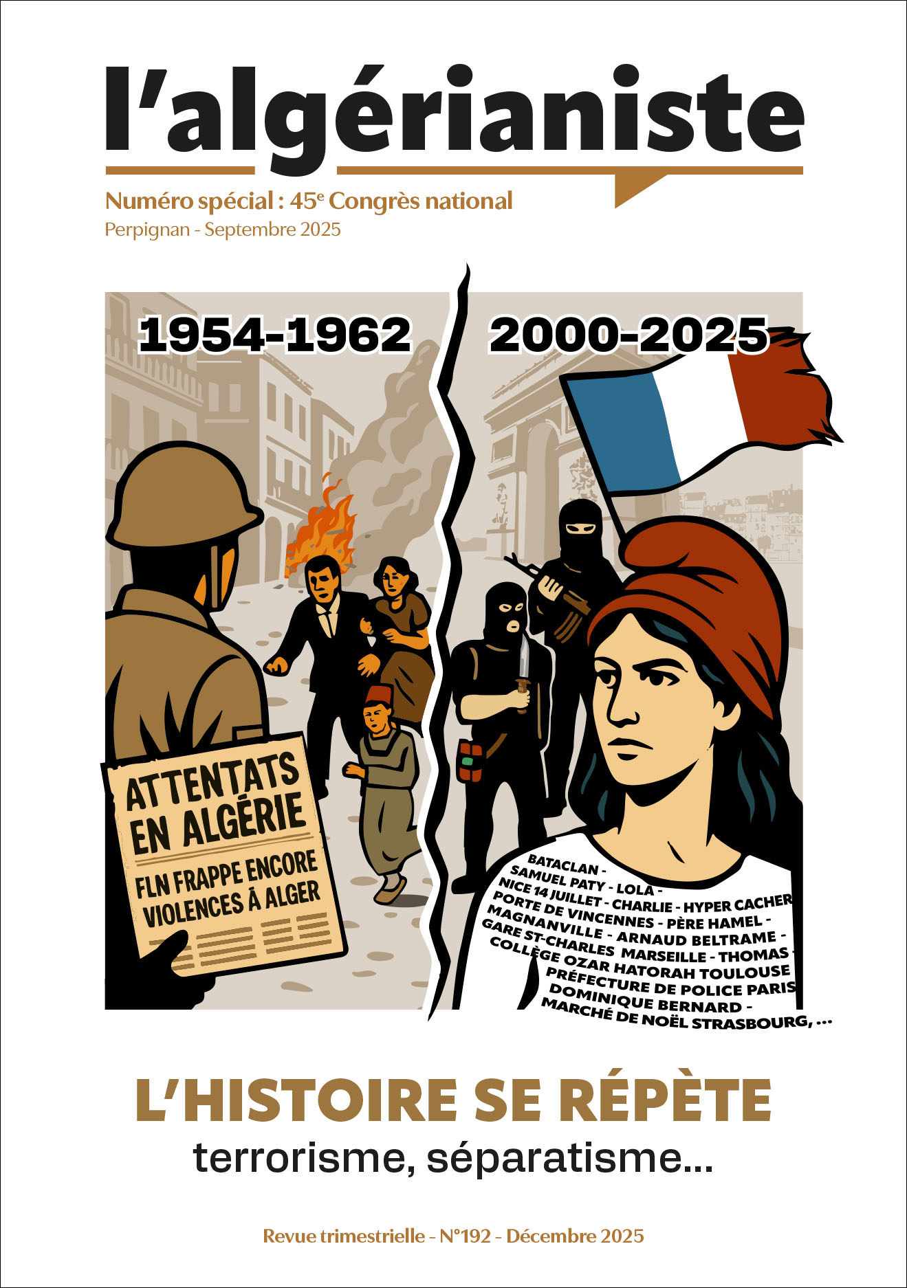Ce numéro exceptionnel de l’Algérianiste est un peu plus qu’une publication : c’est un lien, un prolongement, une main tendue à tous ceux qui n’ont pu être présents au 45ᵉ Congrès national du Cercle algérianiste de septembre 2025.
